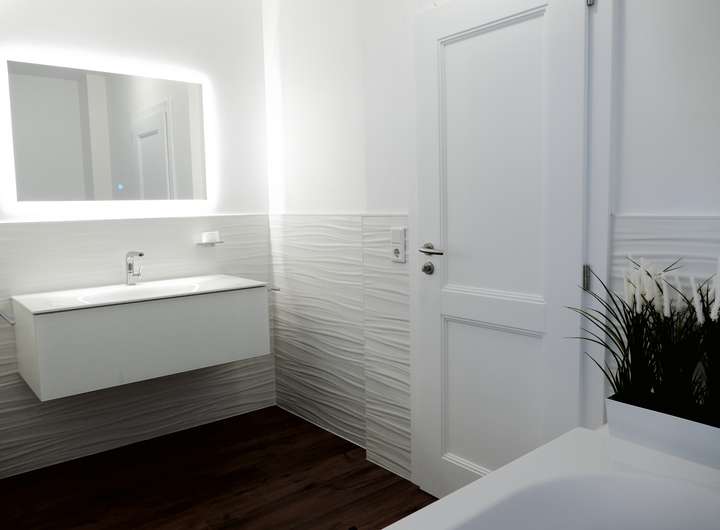 Aus dem großen Wellnessbereich (30 qm) mit hochwertiger Sauna und ebenerdiger Wellnessdusche gelangen Sie auf die große dritte Terrasse (20 qm, mit elektrischer Markise) und in den schön eingewachsenen Garten mit automatischer Bewässerung, der trotz seiner zentralen Lage uneinsehbar und ruhig gelegen ist.
