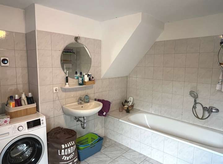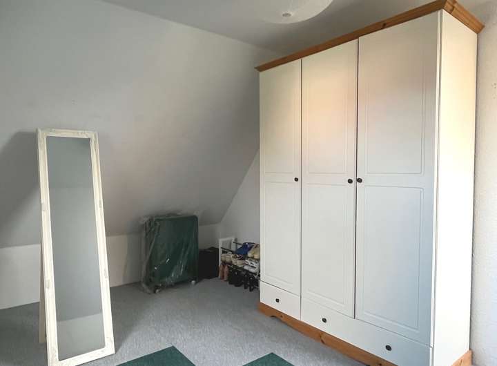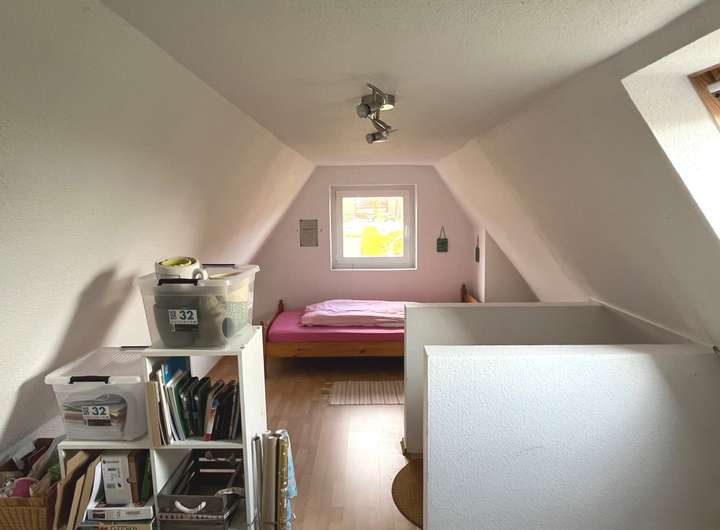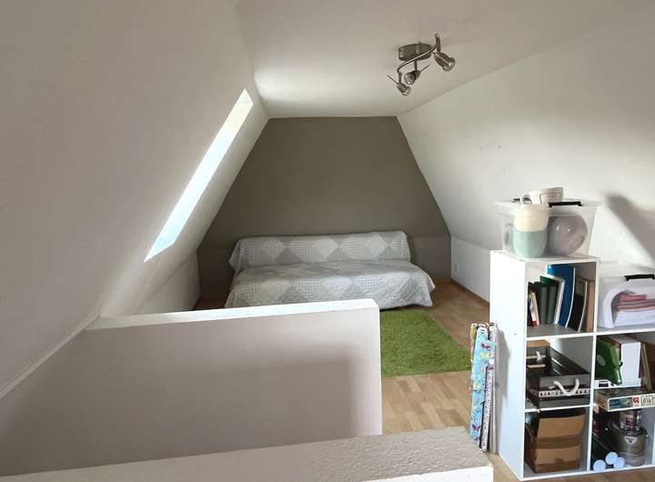 Im Erdgeschoss befinden sich Wohnzimmer, Küche, Schlafzimmer und 2 Bäder. Das größere Bad verfügt über Badewanne und Dusche, das kleinere über eine Dusche. Im Dachgeschoss befinden sich 2 getrennte Zimmer, die sie jeweils über eine separate Treppe erreichen.