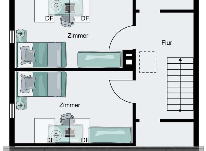 Das ausgebaute Dachgeschoss präsentiert sich lichtdurchflutet. Ein idealer Bereich für Jugendliche oder Gäste, die hier zwei Zimmer vorfinden. Zusätzliche Stellfläche bieten zwei kleine Abseiten.