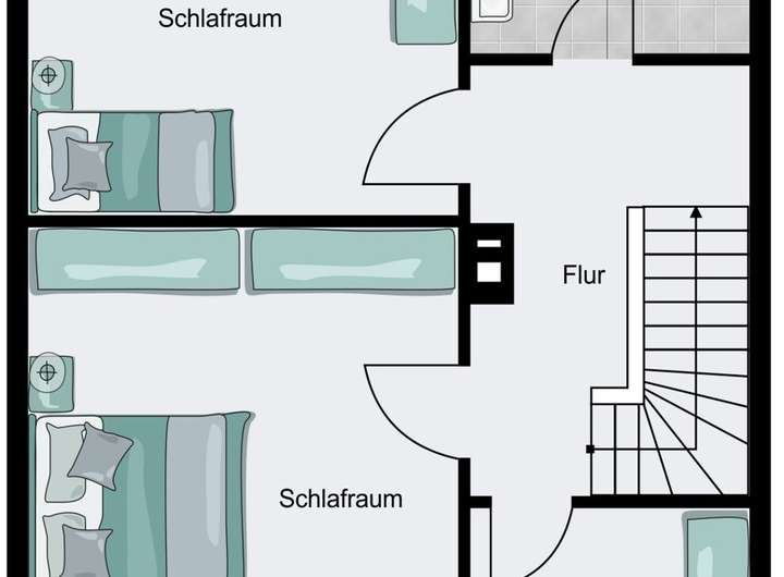 Im Obergeschoss bietet Ihnen das Endreihenhaus ein Schlafzimmer sowie zwei weitere Zimmer, die optimal als Kinder-, Gäste-, oder Arbeitszimmer genutzt werden können. Das Badezimmer ist hell gefliest und verfügt neben den typischen sanitären Elementen über eine Dusche und ein Fenster.