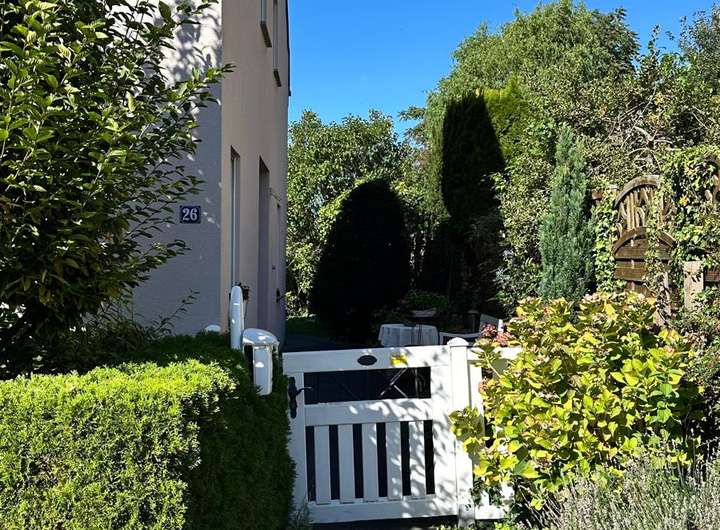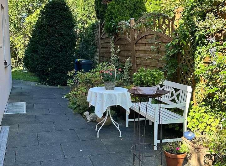 Das 692 m² große Grundstück ist liebevoll angelegt, pflegeleicht und wunderschön eingewachsen.