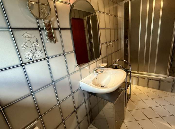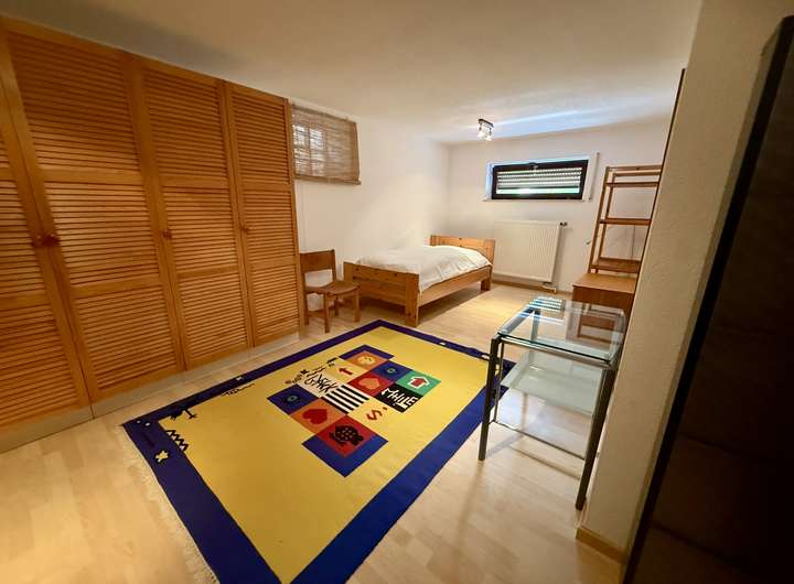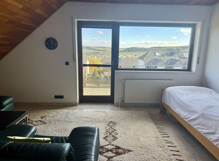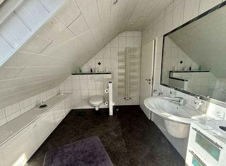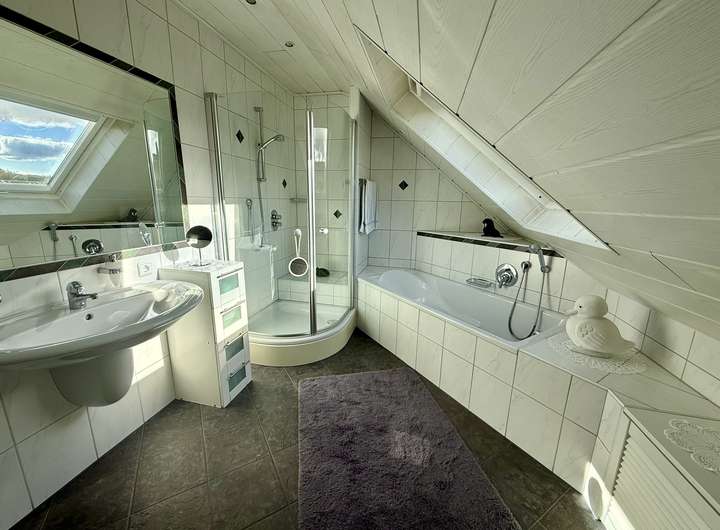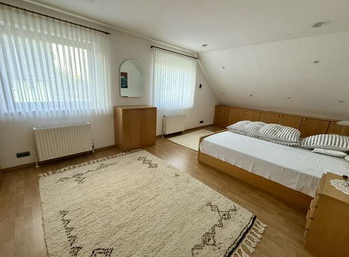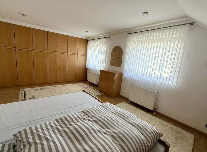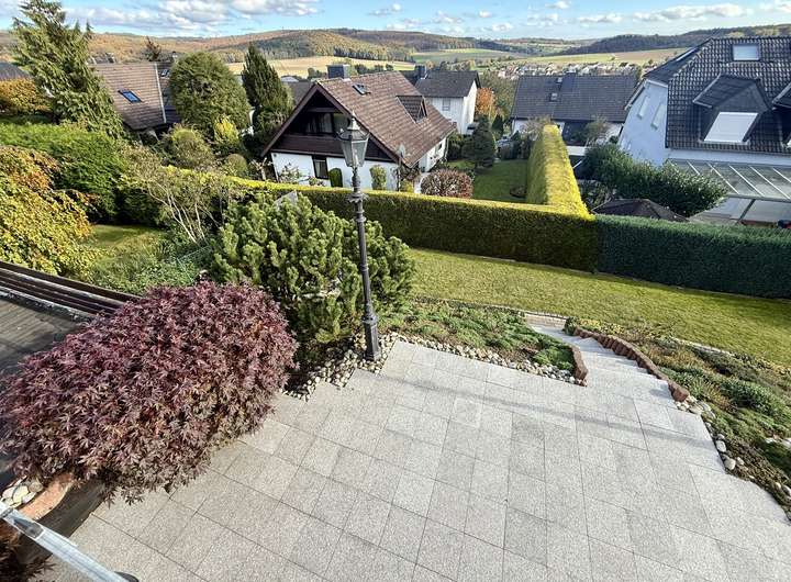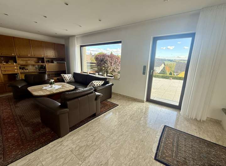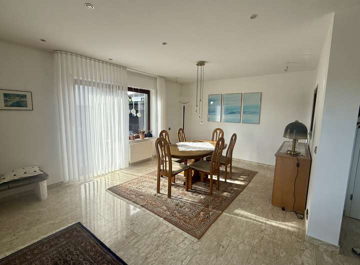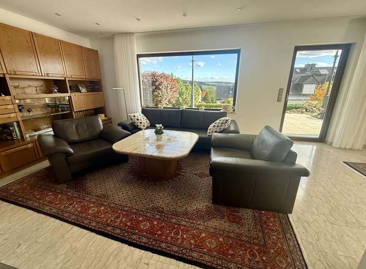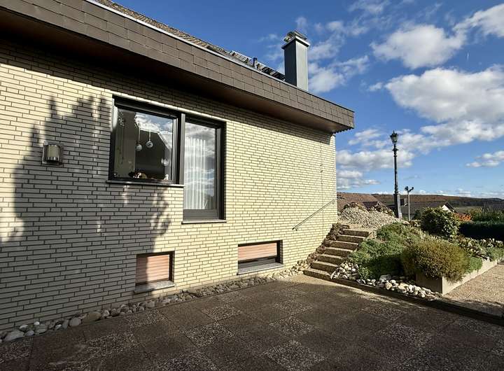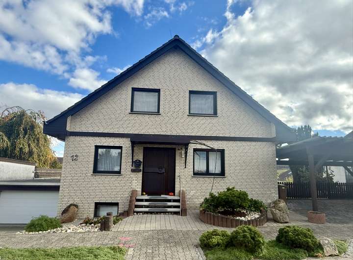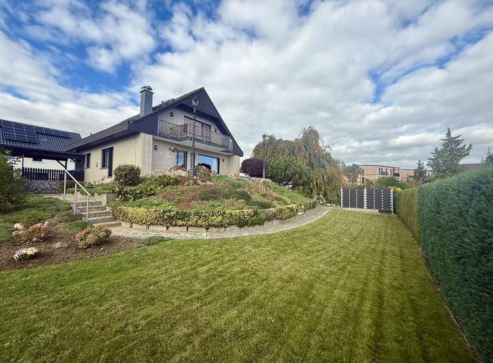 Es verfügt über ein großes Wohnzimmer mit Essbereich und direkt angrenzender großzügiger Terrasse, vier Schlafzimmer, (ein Zimmer hat einen Balkon mit schönem Fernblick), ein weiteres Zimmer, Einbauküche, zwei Badezimmern und ein Gäste-WC. Es ist eine Garage mit zwei Stellplätzen und ein Carport mit weiteren zwei Stellplätzen vorhanden. Das Haus wird kurzfristig bezugsfrei sein und bietet somit eine hervorragende Gelegenheit für zukünftige Eigentümer ein hochwertiges neues Eigenheim zu beziehen.