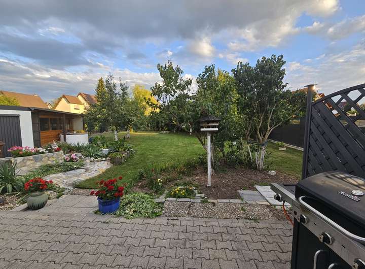Der gepflegte Garten mit Obstbäumen bietet jede Menge Platz für Kinder, Haustiere und Outdoor-Aktivitäten. Genießen Sie die warme Jahreszeit auf der großen Terrasse, die perfekt für Grillabende oder entspannte Nachmittage ist.