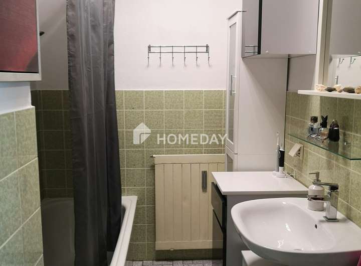 Im Inneren überzeugt die Wohnung durch einen zeitlosen Stil. Der einladende Flur bildet den zentralen Ausgangspunkt, von dem alle Räume zugänglich sind. Das Badezimmer fügt sich harmonisch in das Gesamtbild ein: Es handelt sich um ein gepflegtes Tageslichtbad mit Badewanne. Zusätzlich steht ein separates Gäste-WC zur Verfügung, was den Wohnkomfort nochmals erhöht.
