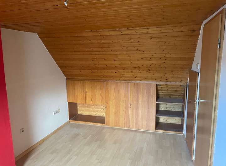 DG-Zimmer (DG): 15,2 m2 / 1 Fenster / teilweise holzvertäfelt. Einbauschränke