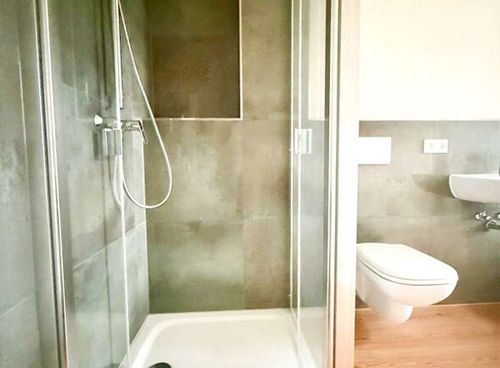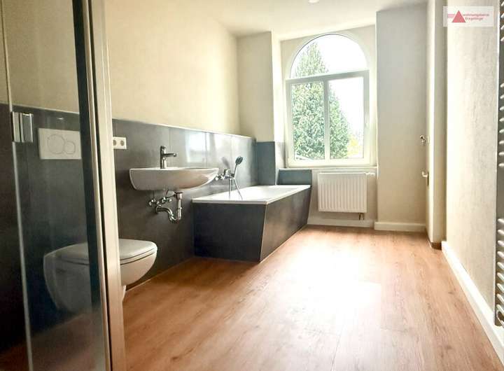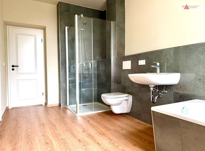 - modernes Tageslichtbad mit Wanne, ebenerdiger Dusche und WC, Waschmaschinenanschluss sowie Handtuchheizung
