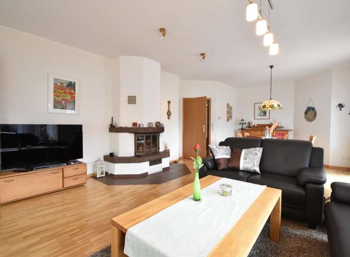 * Wohn- und Essbereich mit Kamin und Zugang zum Garten