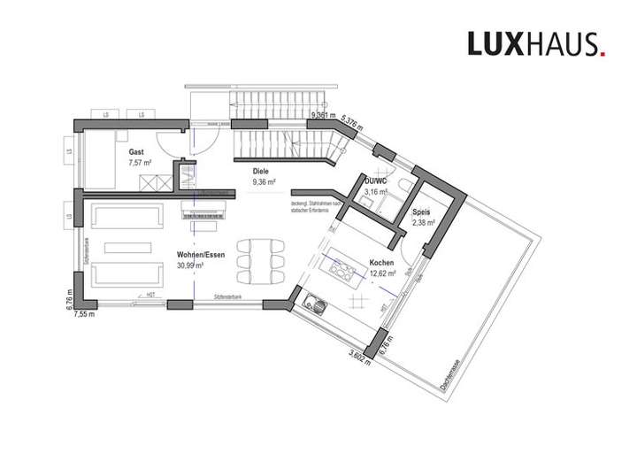 LUXHAUS bietet Ein- und Zweifamilienhäuser in diffusionsoffener Holztafelbauweise an. Die Häuser zeichnen sich durch individuelle Planung und Fertigung ohne Rastermaße, anspruchsvolle Architektur und innovative Technik aus. Die moderne LUXHAUS Musterhaus-Architektur ist vom klassischen Bauhaus-Stil inspiriert und in individuellen Wohnkonzepten in geradlinigem Design mit liebevollen Details interpretiert.