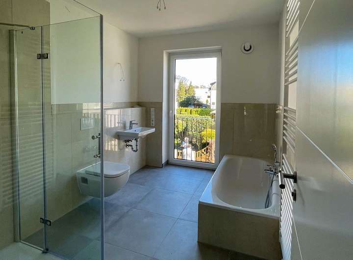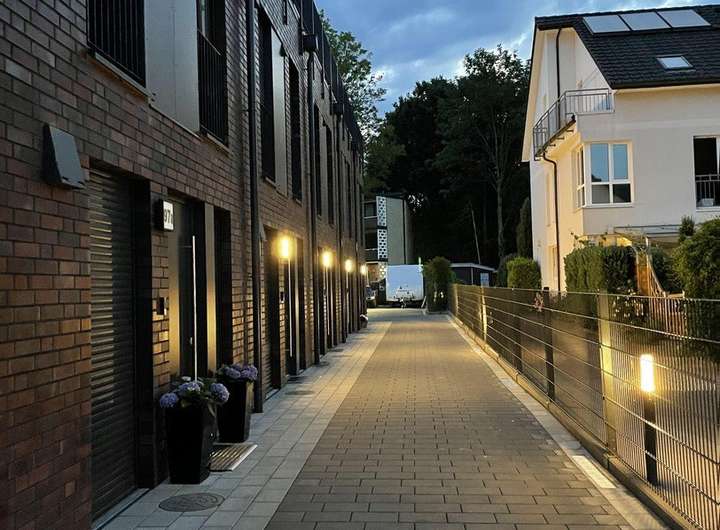 Stadthaus mit höchster Wohnqualität über drei Ebenen | Verwendung hochwertiger und aufeinander abgestimmter Materialien | Massivbauweise mit Luftwärmepumpe und dezentraler Lüftungsanlage | Bodentiefe Fenster | elektrische Aussenrollläden an allen Fenstern | Großzügiger Wohn-Essbereich mit Zugang zum Garten | Nobilia Küche mit Elektrogeräten | 2 Badezimmer und 1 Gäste WC im EG | Heizkörper im Bad STG zusätzlich mit elektrischen Patron ausgestattet, heizt unabhängig vom Wetter | 2 Dachterrassen | HWR mit Waschmaschinenanschluss | Großer Gemeinschaftsgarten mit Kinderspielplatz | Stellplatz