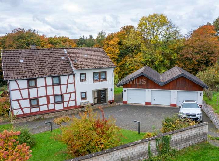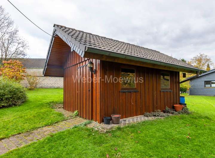 Bei diesem Angebot handelt es sich um ein freistehendes Wohnhaus mit 3 Garagen, einem großen Gartenhaus (Werkstatt/Geräte) und einem Holzschuppen auf einem 1.503 m² großen Grundstück– inklusive einer zweiten Bauparzelle.