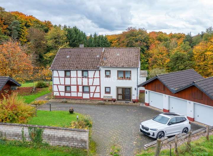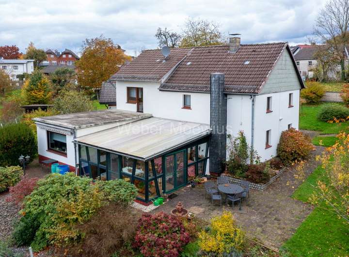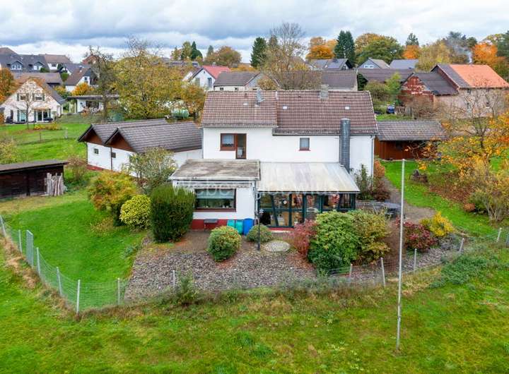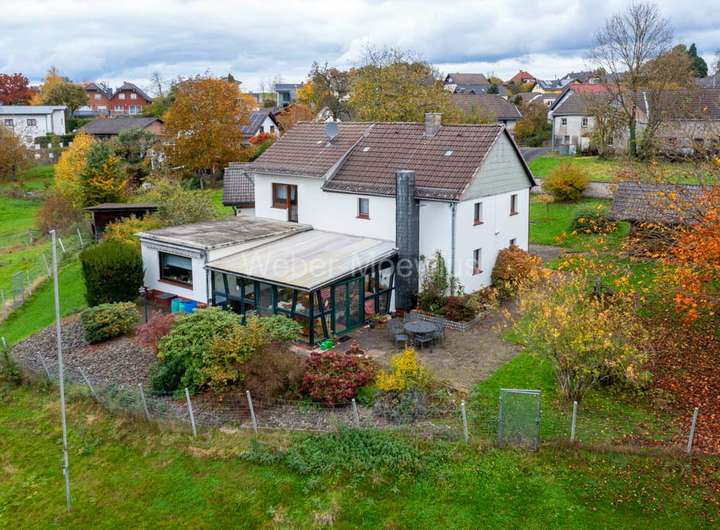 Das hier angebotene Haus befindet sich in einem etwa 3 km vom Zentrum entfernten Ortsteil in idyllischer Wiesen- und Waldrandlage am Ende eines kleinen Stichweges.