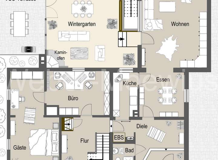 - 8 Zimmer (davon 3 Durchgangszimmer) + Wintergarten