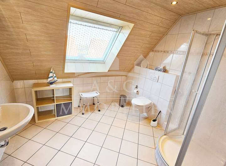 Besonders hervorzuheben sind die ebenerdige, moderne Dusche sowie die geschickt angeordneten Schlafbereiche, die ein bequemes und müheloses Wohnen ohne Treppensteigen erlauben – ideal für jedes Lebensalter.