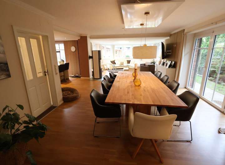 •	Luxuriöser Wohn- und Essbereich mit offener Einbauküche