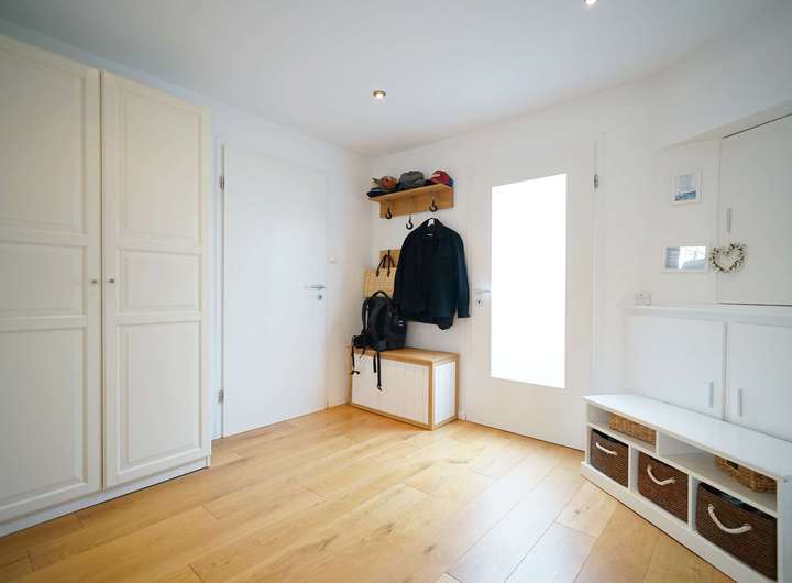 Die Grundrissgestaltung bietet mehrere Nutzungsmöglichkeiten zu. Der hintere Teil hat einen separaten Eingangsbereich. Es besteht daher die Möglichkeit Wohnen und selbständiges Arbeiten zu verbinden. Der hintere Teil kann hervorragend als kleine Praxis oder Beratungsbüro genutzt werden und in diesem Zuge individuell gestaltet werden.
