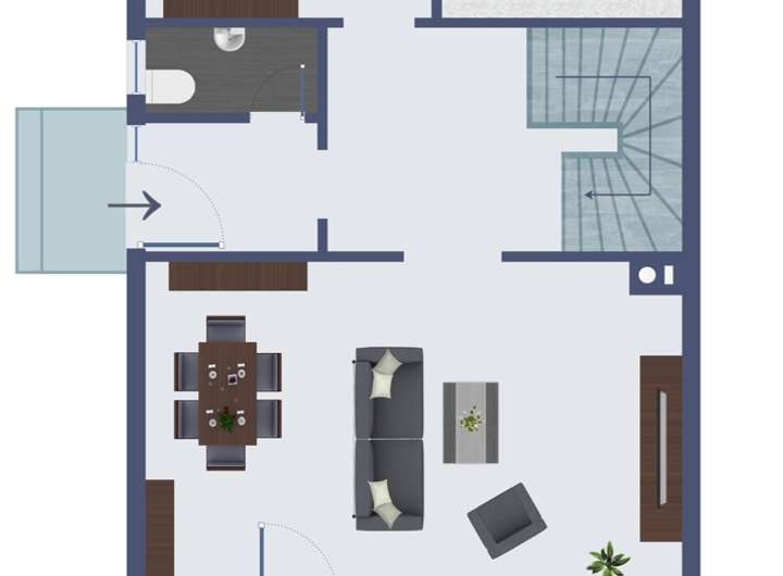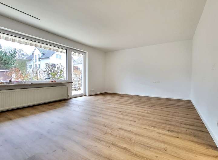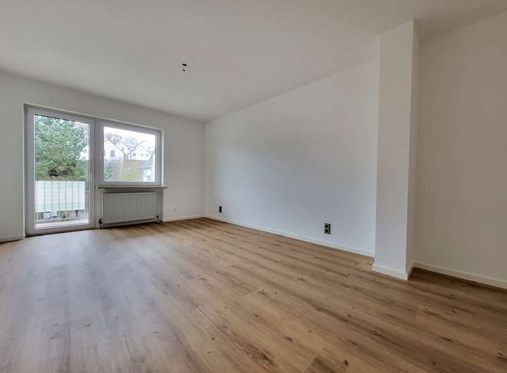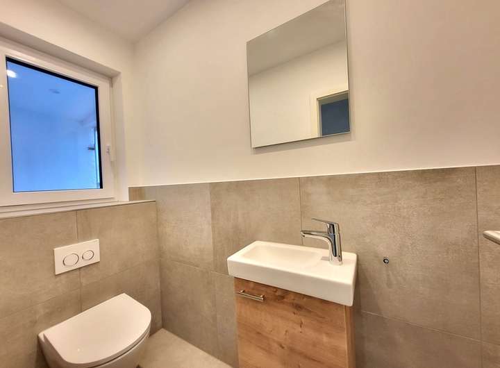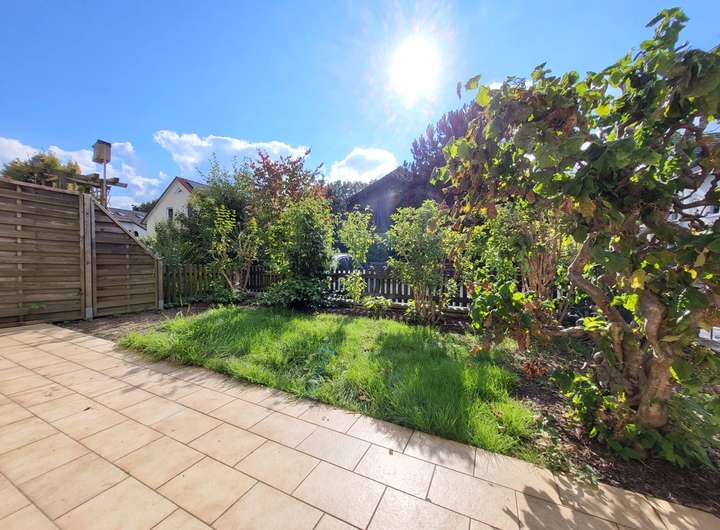 Neben einem lichtdurchfluteten Wohnzimmer finden Sie im Erdgeschoss ein an die Küche angrenzendes Esszimmer und ein Gäste-WC vor. Eine moderne Einbauküche wird installiert und ist im Mietpreis enthalten. Die große, sonnige Terrasse (neuer Belag im nächsten Jahr) ist nach Süden ausgerichtet und hat eine Markise.