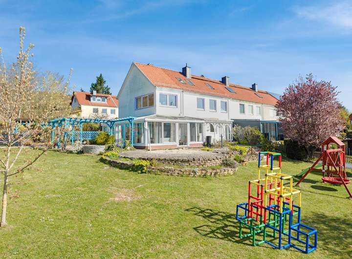 Am Ende einer ruhigen Reihe gelegen, bietet dieses charmante Haus mit 193 m² Wohnfläche und einem 1.472 m² großen Grundstück ein Höchstmaß an Privatsphäre und Platz für die ganze Familie.