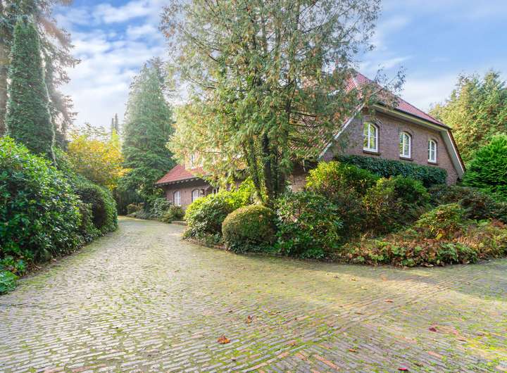 Die Umgebung ist geprägt von gepflegten Einfamilienhäusern, landwirtschaftlichen Flächen und typischer ammerländischer Parklandschaft.