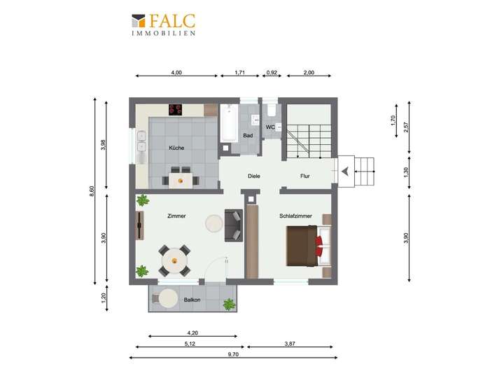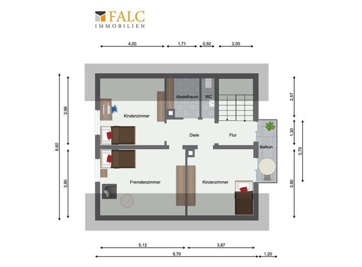 Auf dieser Etage finden Sie noch ein WC sowie einen Abstellraum. Ein weiteres Highlight ist der Zugang zum zweiten Balkon, der von vom Flur aus begangen werden kann.