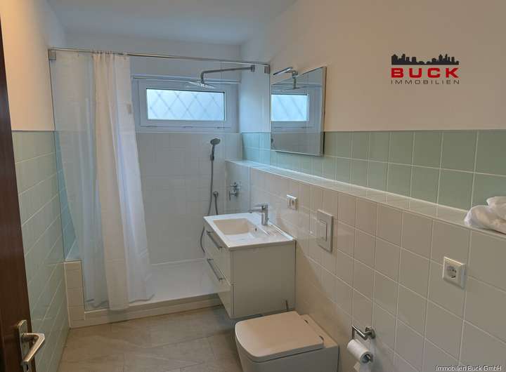 - Tageslichtbadezimmer im Erdgeschoss mit Dusche, Fenster und WC