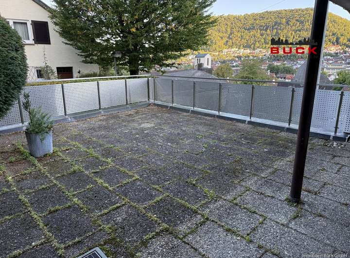 - große, teilweise umlaufende Terrasse (mit neu angebrachtem Geländer)