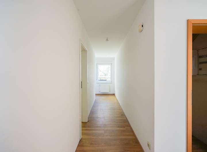 Die obere Wohneinheit spiegelt das Raumkonzept des Erdgeschosses in Teilen wider und überzeugt ebenfalls mit drei Zimmern, einer großzügigen separaten Küche und einem hellen Badezimmer mit Fenster. Auch hier ist eine klare Raumaufteilung gegeben, die sowohl Familien als auch Paaren oder Einzelpersonen eine angenehme Wohnatmosphäre bietet.