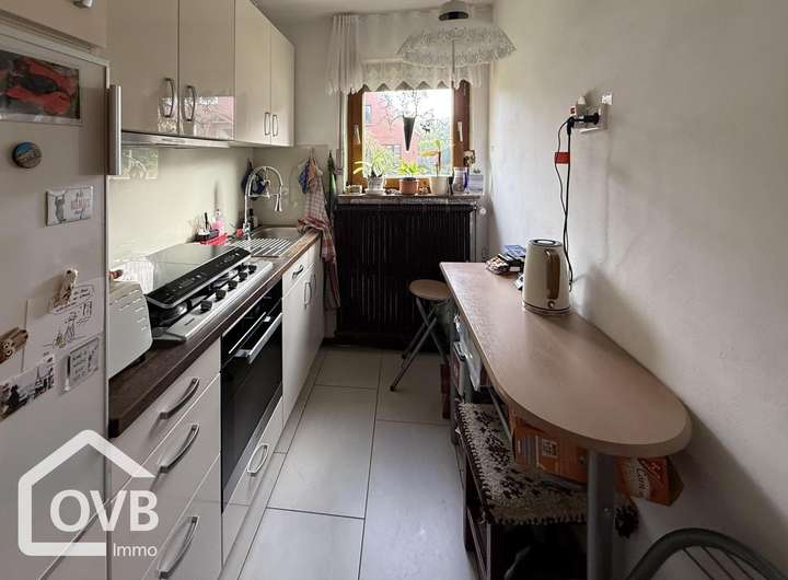 Die separate Küche ist mit einer modernen Einbauzeile ausgestattet. Ebenfalls auf dieser Ebene: das modernisierte Tageslichtbad mit ebenerdiger Dusche.