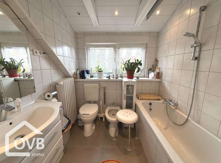 - Zwei modernisierte Bäder (EG mit ebenerdiger Dusche, OG mit Badewanne und Bidet)