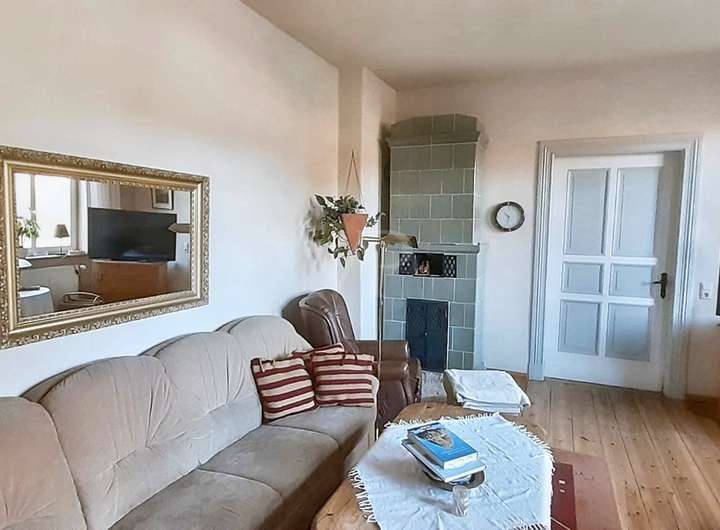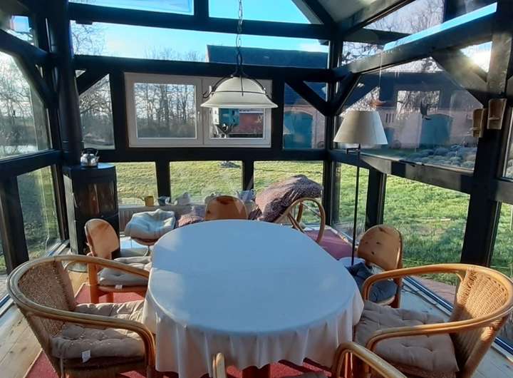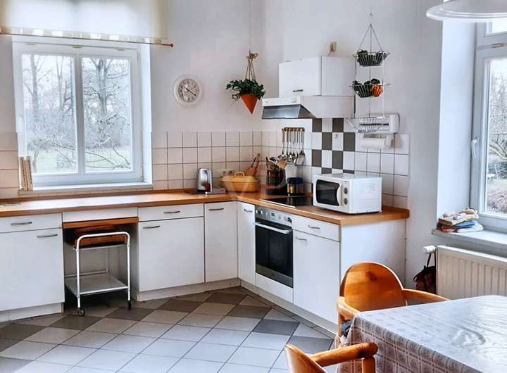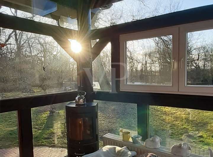 Das Wohnhaus bietet etwa 190 m² Wohnfläche. Im Erdgeschoss befinden sich ein geräumiges Wohnzimmer, zwei Badezimmer, ein separates WC sowie eine Küche mit angrenzendem Esszimmer. Zudem gibt es zwei Schlafzimmer und eine praktische Abstellkammer. Die moderne Gas-Zentralheizung, die im Jahr 2022 im Keller installiert wurde, sorgt für wohlige Wärme. Der Wintergarten bietet einen ruhigen Rückzugsort mit direktem Zugang zum Garten. Für zusätzliche Behaglichkeit im Wohnraum sorgen zwei Kamine und ein Kachelofen. Das gesamte Haus ist vollständig unterkellert, was zusätzlichen Stauraum bietet.