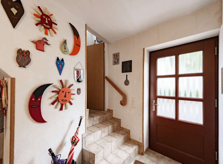 Das voll vermietete Haus hat eine Gesamtwohnfläche von rund 255 m². Im Erdgeschoss und Dachgeschoss befindet sich jeweils eine größere Wohnung mit vier Zimmern. Im Untergeschoss liegt eine Einzimmerwohnung, dazu kommen Garage, Werkstatt und Kellerräume. Die aktuelle Kaltmiete beträgt 19.224 € im Jahr.