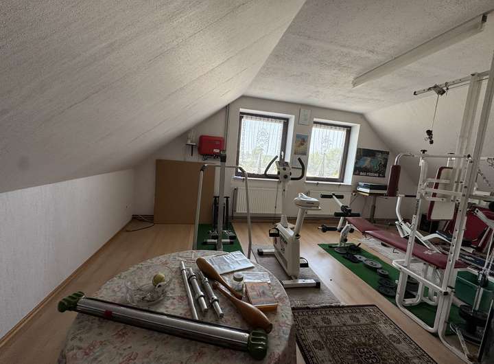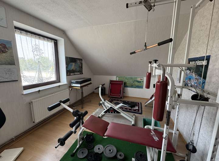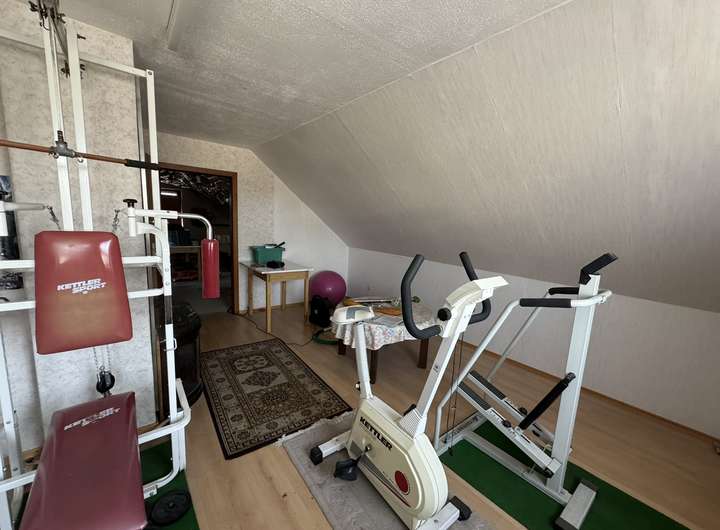 Das Dachgeschoss verfügt über einen ausgebauten Raum (aktuell Fitness-/Hobbyraum) sowie zusätzliche Ausbaureserve.