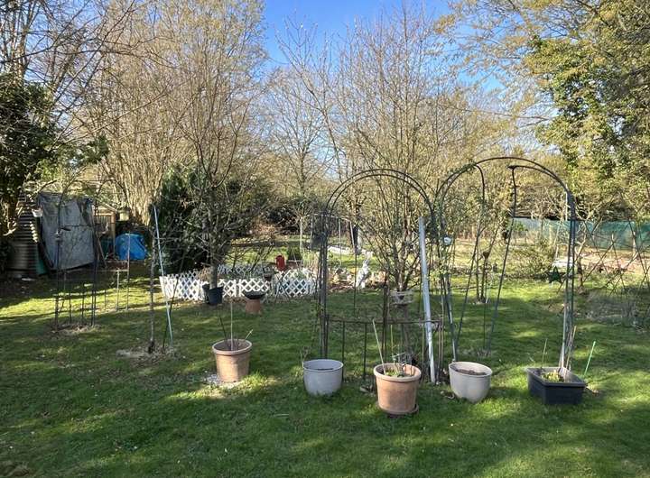 Die Wohnfläche von ca. 96 m² verteilt sich auf fünf Zimmer, eine kleine Küche und ein Duschbad. Hinzu kommen zwei baujahrestypische Anbauten an der Gartenseite des Hauses.