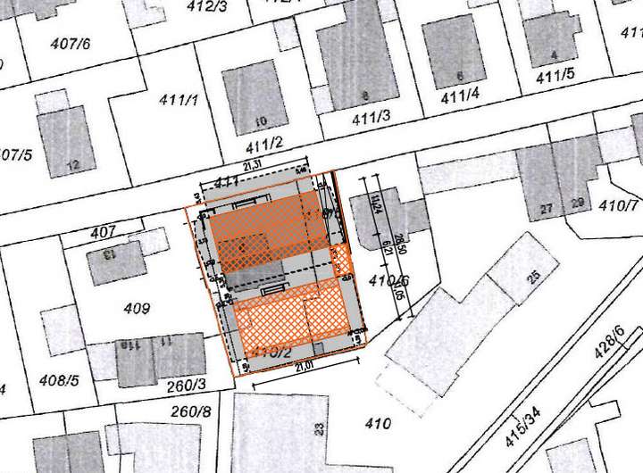 Zentral gelegenes Wohnbaugrundstück mit bestehendem Baurecht für 12 Wohnungen samt Tiefgarage (22 Stellplätze), verteilt auf zwei kleine Wohnhäuser.