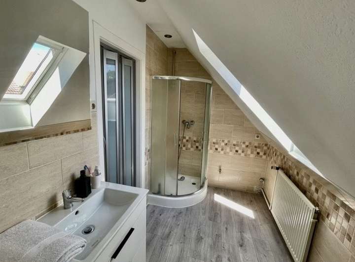 Die Immobilie wurde zuletzt 2023 mit neuen Badezimmern ausgestattet. Die Einbauküchen in zwei Wohneinheiten stammen aus 2021, und die energieeffiziente Heizungsanlage wurde auf den neuesten Stand gebracht. Herzstück des Heizsystems ist eine leistungsstarke Ölheizung mit Solarthermieunterstützung, ergänzt durch einen 14,5 kW-Kamin mit computergesteuerter Heizungsregelung, der nicht nur für wohlige Wärme, sondern auch für effizientes Heizen sorgt.