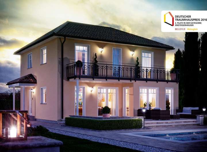Dargestellte Anbauteile sind teilweise Sonderausstattung und optional gegen Aufpreis erhältlich. Nicht enthalten sind die üblichen Baunebenkosten (z. B. Hausanschlüsse, Außenanlagen, Genehmigungsgebühren) sowie die Kaufnebenkosten (Grunderwerbsteuer, Notar- und Grundbuchkosten).