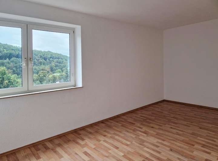 - Laminat- Bodenbelag und Raufasertapete in den Wohnräumen