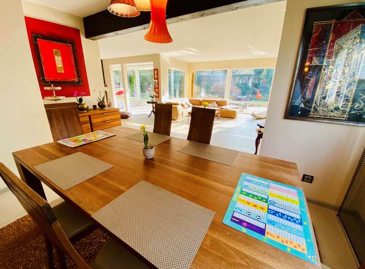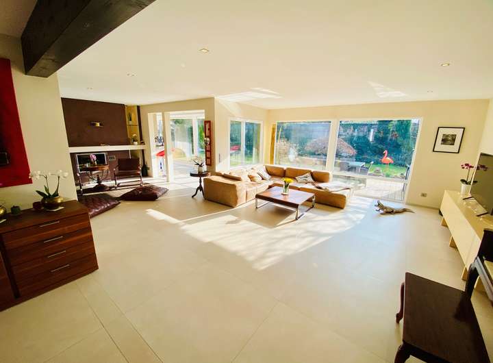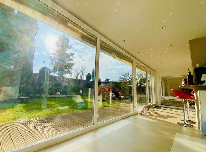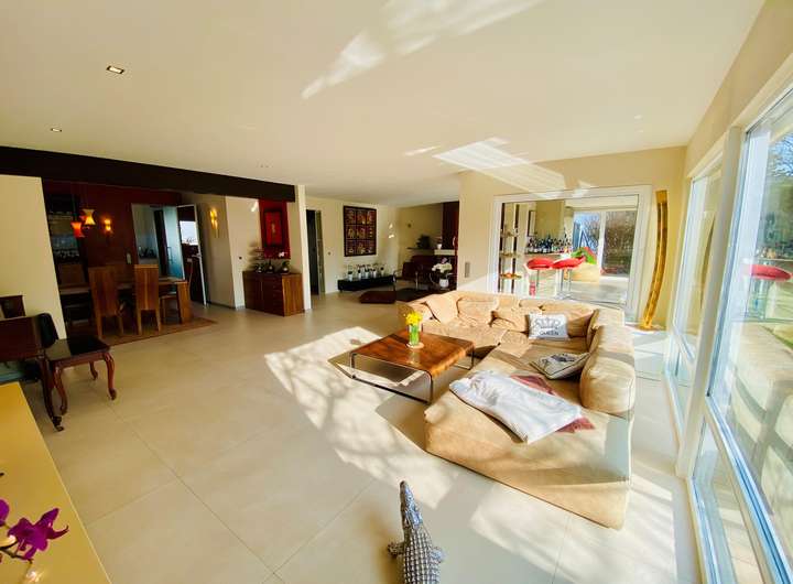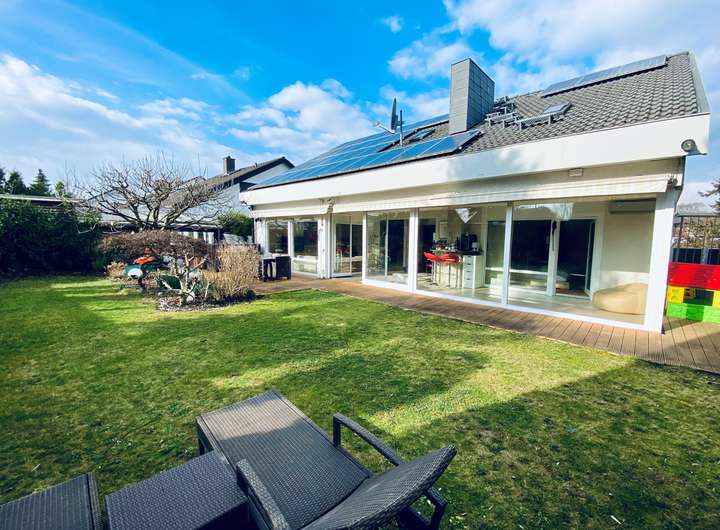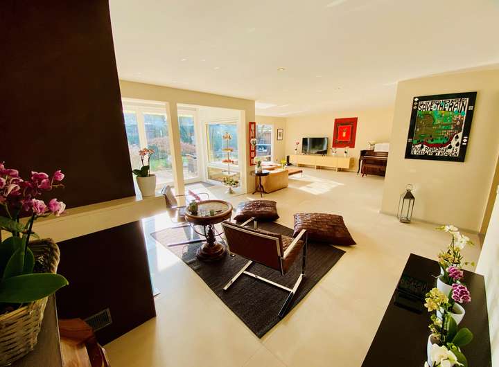 Das Anfang der 80er realisierte Architektenhaus wurde in den letzten Jahren kernsaniert und aufwendig mit einem Innenarchitekten in eine moderne und zeitgemäße Unternehmervilla in Bestzustand verwandelt.