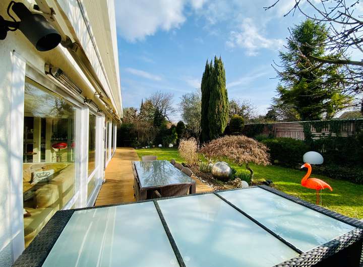 Auf rund 333qm bietet sich nun eine Harmonie von offenem, großzügigen Wohngefühl und luxuriösen Materialien. Der große private toskanische Garten ist nicht einsehbar. Die vielfältige Ansammlung an wunderschön beleuchteten, exklusiven Pflanzen und Brunnen lässt sich am besten abends mit einem Glas Wein vom Jacuzzi unter der Kirschbaumblüte genießen. Ein Anwesen dieser Klasse besitzt selbstverständlich 5 Stellplätze (davon zwei XXL-Garagen).