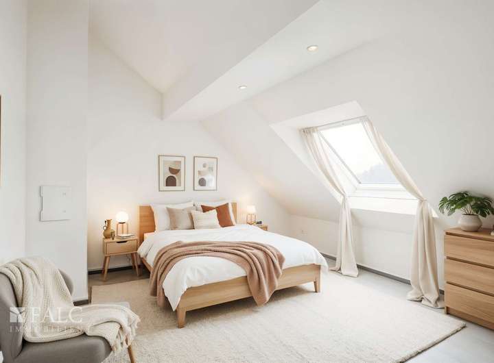 Im zweiten Obergeschoss finden Sie zwei weitere Schlafzimmer, die ideal als Kinderzimmer oder Homeoffice genutzt werden können. Die Dachfenster lassen viel Licht herein und schaffen eine angenehme Atmosphäre.
