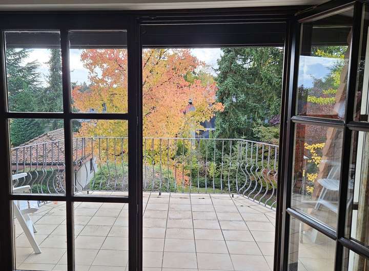 Das zweite Schlafzimmer verfügt ebenfalls über ein eigenes Bad und bietet einen beeindruckenden Ausblick auf den Taunus. Von der Galerie aus besteht zusätzlich ein Zugang zum Dachboden. Beide Schlafzimmer sind derzeit mit Teppichboden ausgestattet. Der Vermieter ist bereit, diesen auf Wunsch zu entfernen und in Abstimmung mit den neuen Mietern einen Bodenbelag nach deren individuellen Vorstellungen zu verlegen – ganz nach Ihrem persönlichen Stil und Komfortbedürfnis. Diverse Möbelstücke können ebenfalls auf Wunsch entfernt werden.