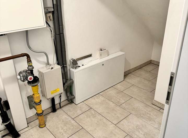 Das Erdgeschoss sowie das große Badezimmer im 1. Obergeschoss sind gefliest und werden mittels Fußbodenheizung geheizt. Die restlichen Wohnräume verfügen über Heizkörper.