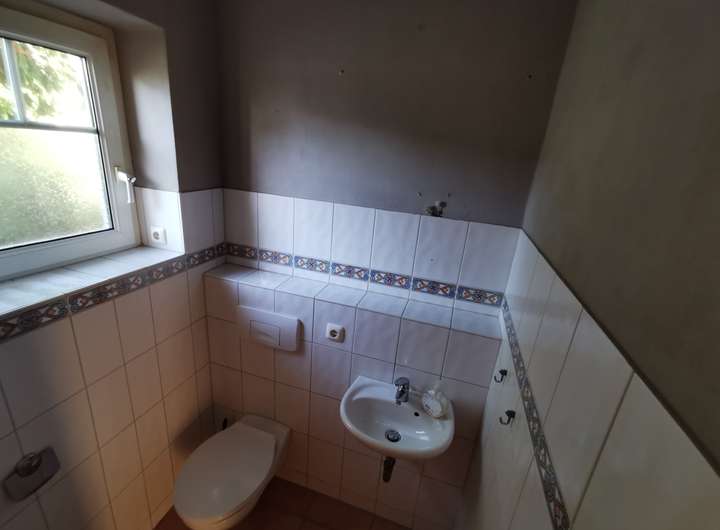 Das Haus erstreckt sich über 2 Etagen und verfügt über ein Gäste-WC sowie ein Badezimmer. Eine Garage bietet Platz für Ihr Fahrzeug. Die normale Innenausstattung lässt Raum für individuelle Gestaltung.