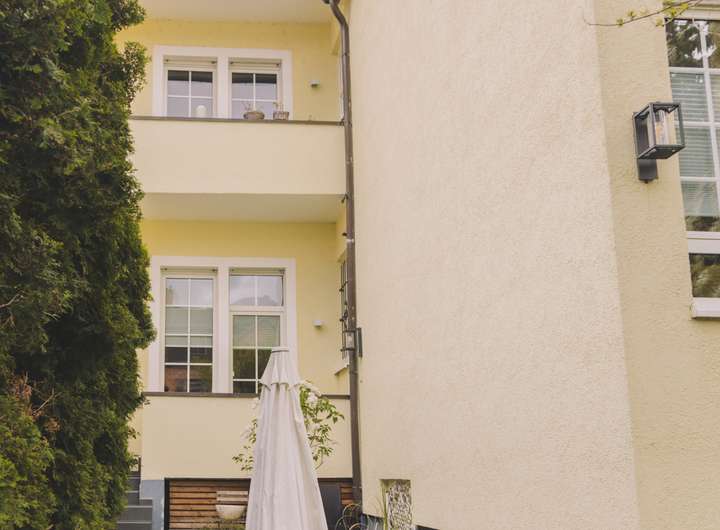 Erd- und Obergeschosswohnung mit jeweils ca. 136m² Wohnfläche verfügen über drei großzügige und lichtdurchflutete Zimmer, eine Küche sowie ein frisch saniertes Bad. Die Erdgeschosswohnung kann mit dem wohnlich ausgebauten Souterrainbereich (derzeit wie eine 2-Zimmer-Wohnung mit Küche und Bad gestaltet) wieder verbunden und