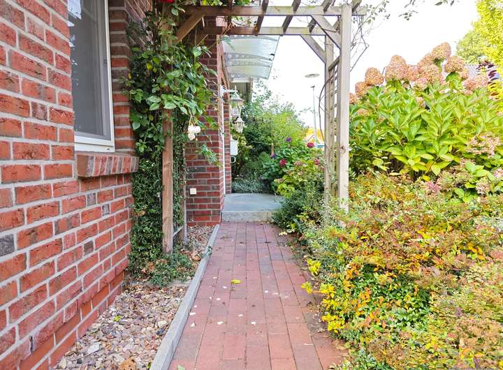 Dieses 2004 massiv erbaute und vollverklinkerte  Zwerchgiebelhaus befindet sich am Ende einer ruhigen Sackgasse – ein ideales Umfeld für Familien, die Wert auf Sicherheit und eine entspannte Wohnatmosphäre legen.