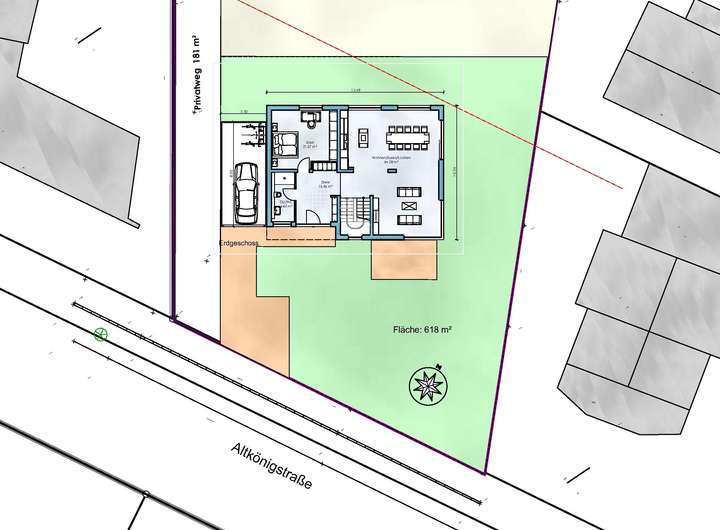 Weiter ist eine 3,50 m breite und 8 m lange Stahlbetonfertigteilgarage für einen großen PKW sowie Fahrräder etc. vorgesehen.