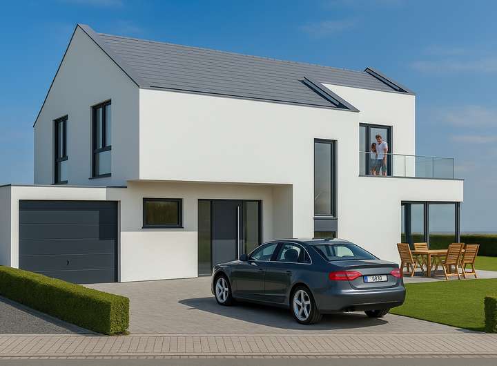 So sind eine Wärmepumpe mit Vorbereitung für eine Photovoltaikanlage, eine zentrale Lüftungsanlage mit Wärmerückgewinnung sowie die komfortable Fußbodenheizung bereits im Festpreis enthalten.