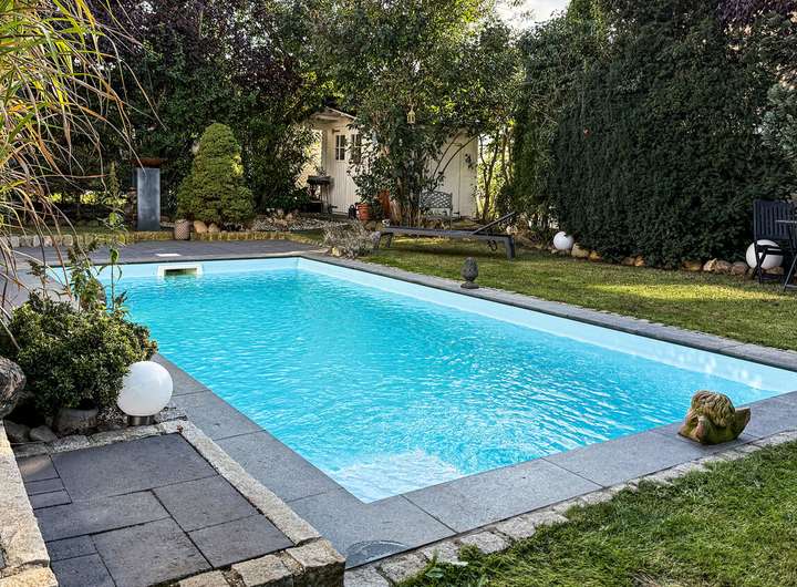 - schön angelegter Garten mit eingebautem Swimming-Pool