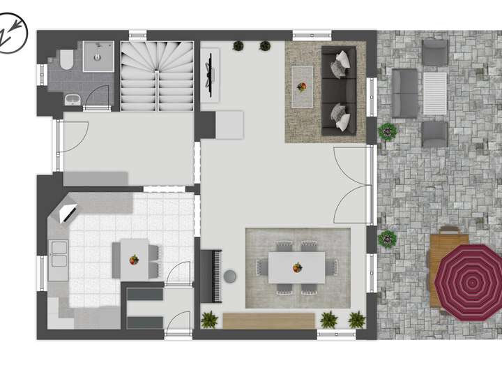- große und überdachte Terrasse mit optimaler Süd-West-Ausrichtung