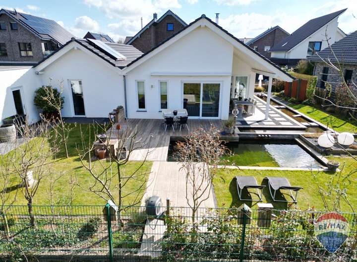 Dieser stilvolle Bungalow aus dem Jahr 2017 vereint modernes Design, hochwertige Ausstattung und durchdachte Architektur zu einem Wohnkonzept, das keine Wünsche offenlässt. Auf einem ca. 670 m² großen Grundstück erwartet Sie ein Zuhause, das durch Eleganz, Komfort und Liebe zum Detail überzeugt.