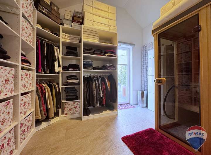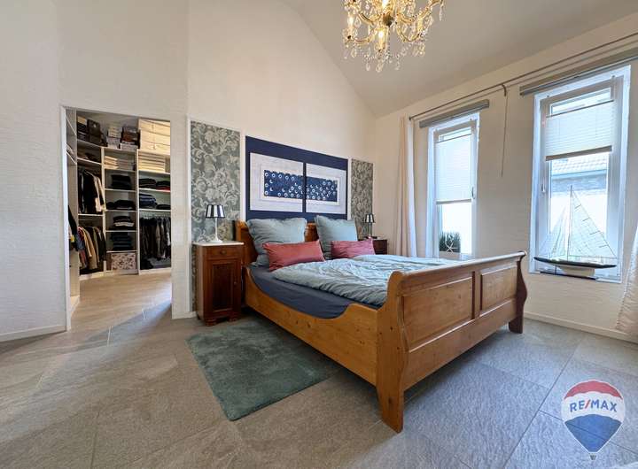Das Schlafzimmer beeindruckt mit einem luxuriösen Bad en suite sowie einem angrenzenden Ankleidezimmer mit integrierter Sauna – eine private Wellness-Oase direkt in Ihrem Zuhause.